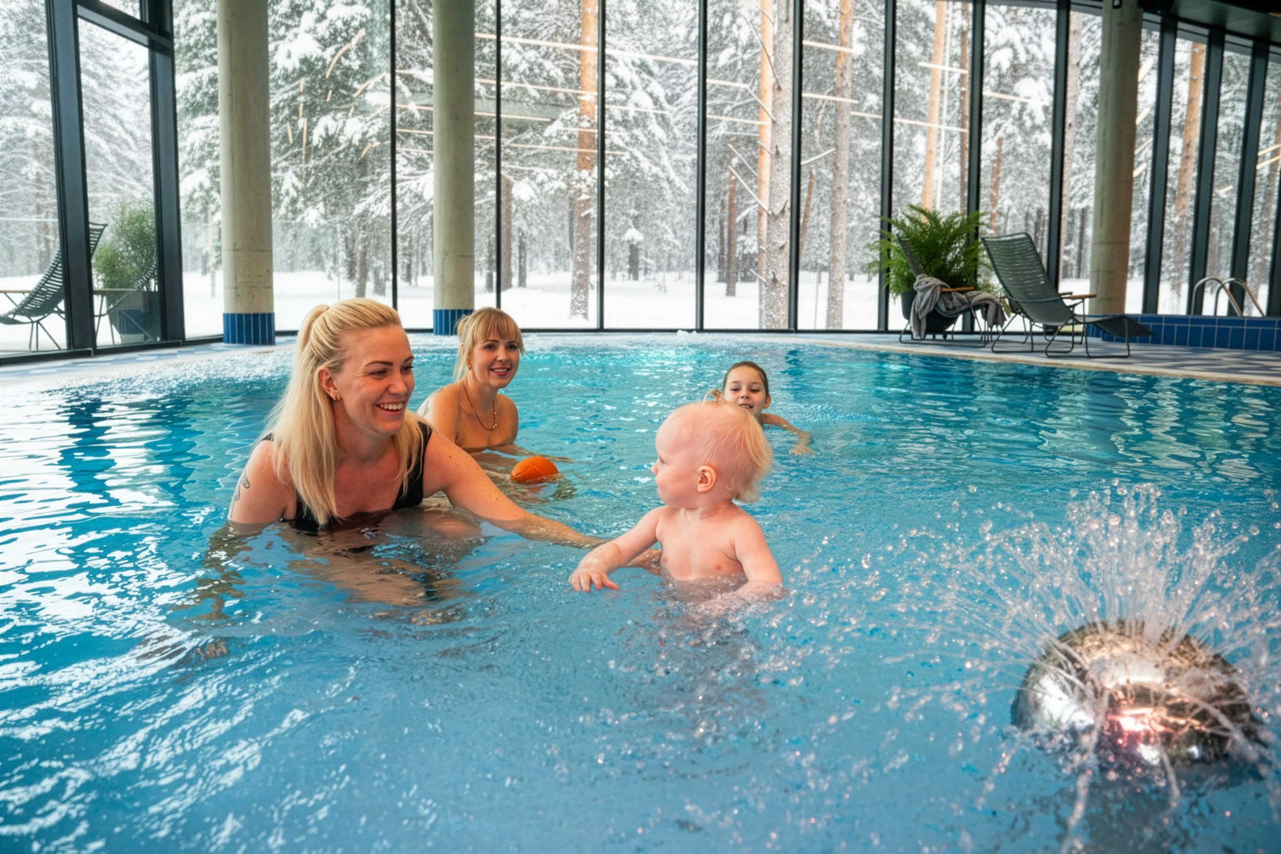 Meil on suur kolme rajaga 25-meetrine ujumisbassein, ruumikas laste- ja mõnubassein, mullivannid ja lõõgastusala ning aknast avaneb maaliliselt kaunis vaade loodusesse. Tähelepanelikumad vaatlejad võivad märgata oravaidki puude latvades mänglevalt hüplemas.